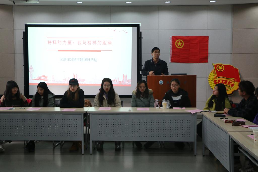 汉语言文学1805班“榜样的力量:我与榜样的距离”主题团日活动在田楼506室进行。校党委副书记戴月波、学生工作处处长张菁燕、校团委书记王维、成人片