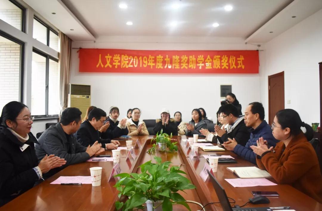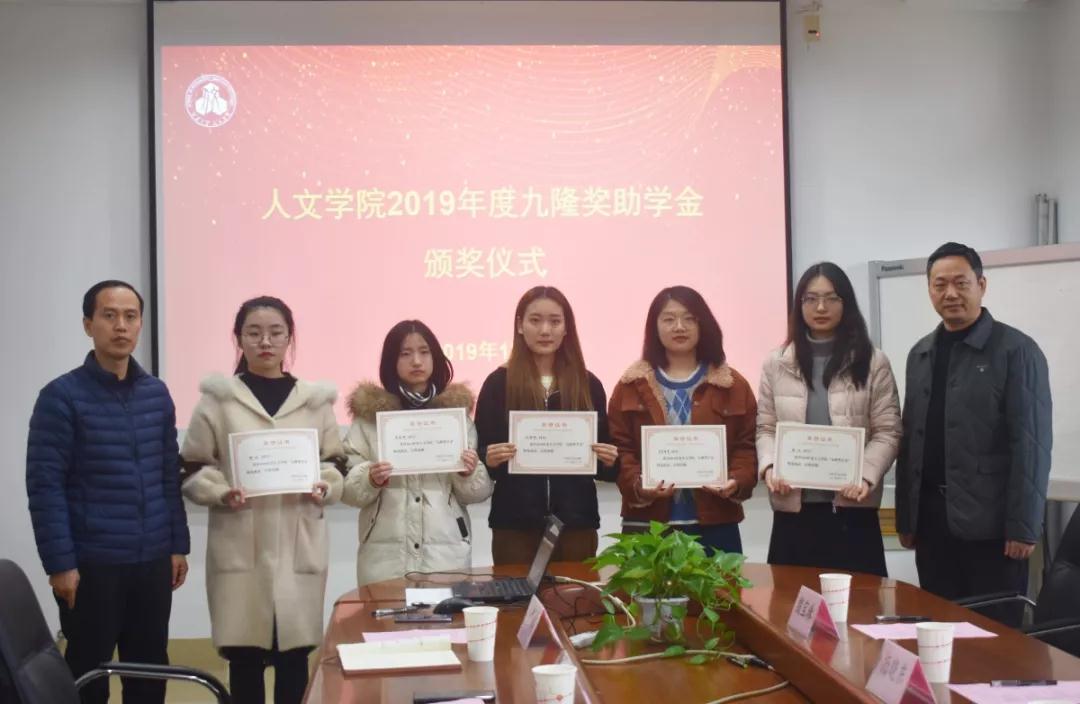 九隆奖助学金颁奖仪式在田家炳楼218举行。九隆保安服务有限公司经理杨晓东、副总经理查锡荣,办公室主任殷宝珠,成人片