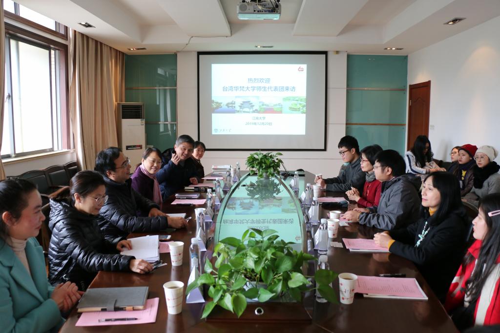 2019年12月20日下午13:30,田家炳楼207会议室,台湾华梵大学两岸事务主任王隆升一行12名师生开展交流座谈活动。校港澳台办公室蔡建英副主任,成人片