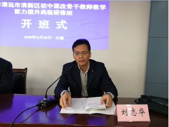 和校长教师培训中心的发展历程,同时也表示将会精心安排本次培训,做好服务工作,同时也希望在六天的培训中,各位学员能能够相互促进,共同提高。随后清远市清新区教育局副局长刘志华阐明了此次培训的背景和意义,他希望全体学员珍惜机会,认真学习,以此为契机反思、改进自身的管理和教学,将培训所学运用到实际工作中。最后研修班班主任史朝介绍了此次学习班的培训计划、培训目标、培训师资专家以及培训日程安排,并对参加培训的教师提出了殷切的期望和具体要求。