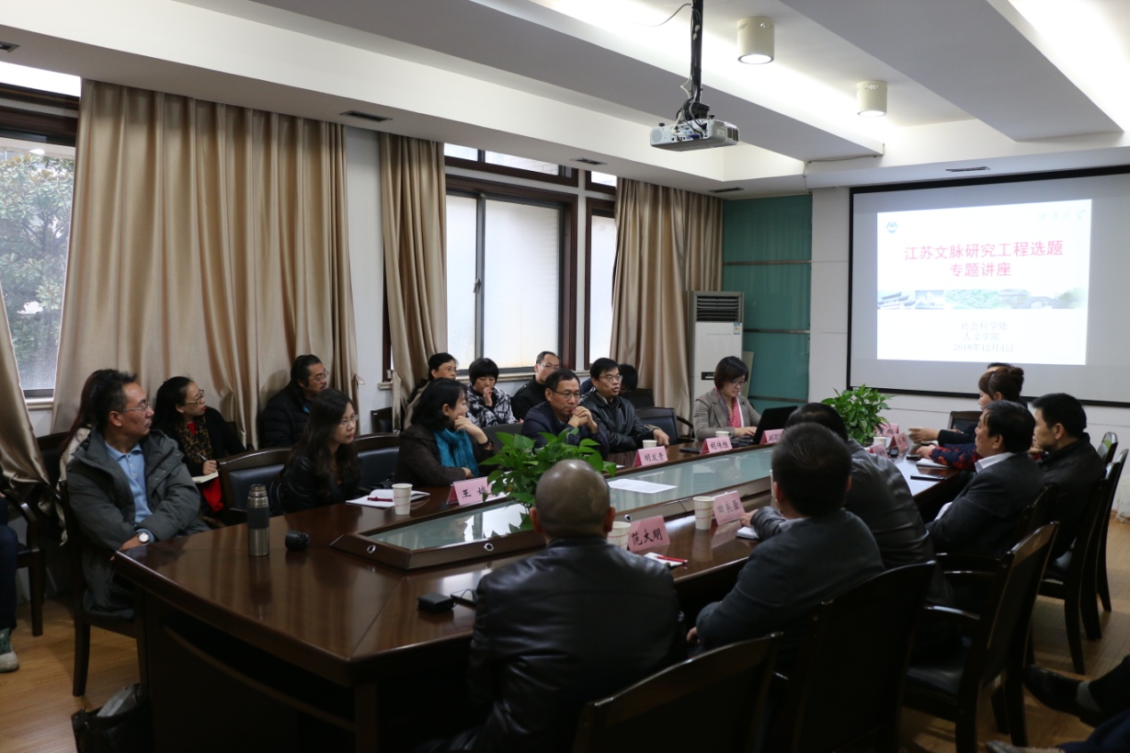 专题讲座。“江苏文脉研究工程”是由江苏省社会科学院发起并组织实施的一项文化建设工程。该工程主要包括“江苏文化通史”研究、“江苏文化名人传”研究、“江苏专门文化史”研究三个方面,主要从知识界、社会大众和政府三个维度共同推进,以贯通历史、现在、未来江苏人特殊的文化生命、文化标识、文化家园,展示生生不息的文化记忆和文化动力。讲座邀请江苏省社科院专家介绍此项文化建设工程的基本情况、当前的建设进展以及研究选题的招标与确定等情况。
