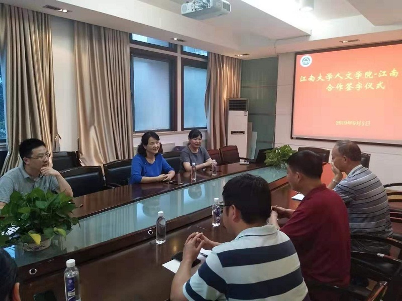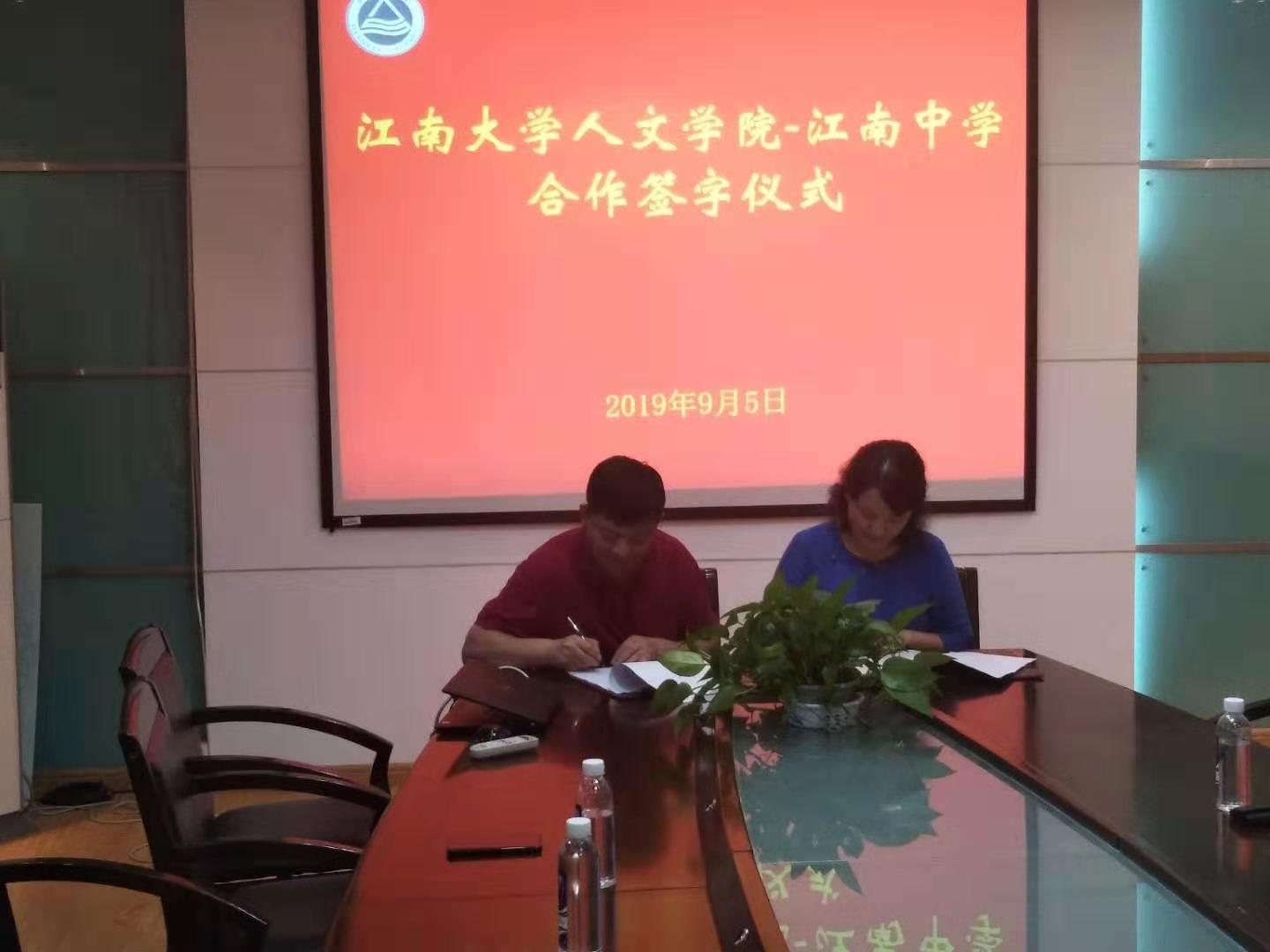 -江南中学合作签字仪式在田家炳楼207会议室举行。江南中学党委书记吴卫红、校长周宏燕、科研处主任陈刚,成人片