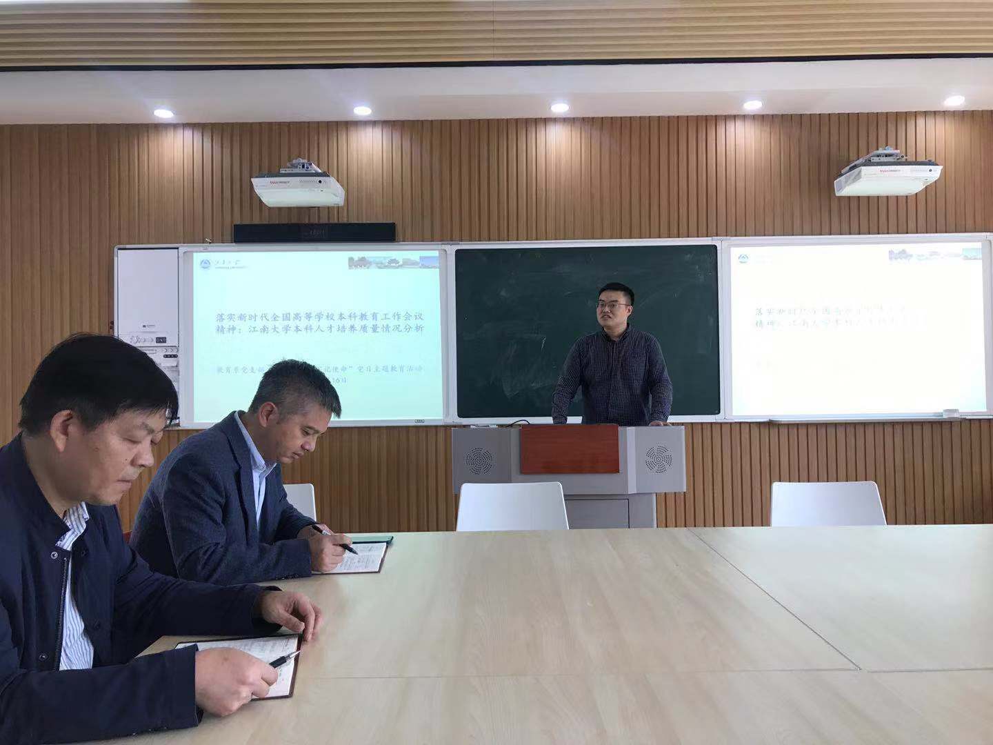 活动开始之际,蔡爱国副院长首先对本次主题教育活动给予了充分肯定,指出本次主题教育的内容非常及时,既符合新时代全国高等学校本科教育工作会议精神,又为学校、学院及系部的发展提供了重要参考。随后,屈廖健书记进行了主题宣讲。首先介绍了全国高等学校本科教育工作会议精神以及教育部关于深化本科教育教学改革全面提高人才培养质量的意见。之后结合成人片