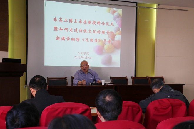 本次讲座由田良臣院长主持。首先,他对朱高正博士的到来表示了热烈的欢迎。随后,朱高正博士结合自身实践经验和研究成果,理论联系实际,开展了演讲。朱高正博士以介绍《近思录》在中国文化史上的地位为基础,由浅入深地提出《近思录》是新儒学的纲领这一观点。并勉励大家多读中国传统文化经典,以正确的方式走进中国传统文化。