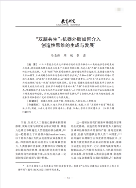 文章以人工智能技术驱动形成的机器外脑介入人类创造性思维的生成与发展为主要研究议题,采用教育学、脑与认知神经科学、信息科学交叉融合视角,揭示了人类“内脑”与机器外脑共构形成创造性思维的认知过程;主要观点认为:人类内脑与机器外脑联结,能够通过跨信息激活、显潜意识协同与元认知调节,生成超越个体经验边界的创新思维空间。“内脑—外脑”双重驱动的创造性思维生成路径,以“破界”引发思维扰动,以“融构”实现异质整合,以“创生”达成价值定向,从而突破传统“发散—收敛”框架的线性逻辑。